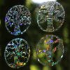 This set of 4 decals is made of durable, reusable, phthalate-free, prismatic vinyl. The clear decals change colors with the light and will cast rainbows on your walls. They stick using static cling and will not leave sticky residue on your windows. The decals in this set range in height from 5.5 inches in diameter. They are easy to apply using warm water, and every set comes with instructions.